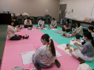 。ベビーマッサージは年に3回実施しています。毎回、ボランティアさんが協力してくださっています。