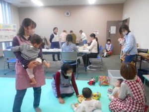同室に工作スペースと赤ちゃんコーナーを設けています。保護者の同意を得て、児童センター内の他の部屋で赤ちゃんを見守ることもあります。