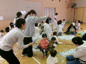 豆まきの前に紙ふぶきあそび!